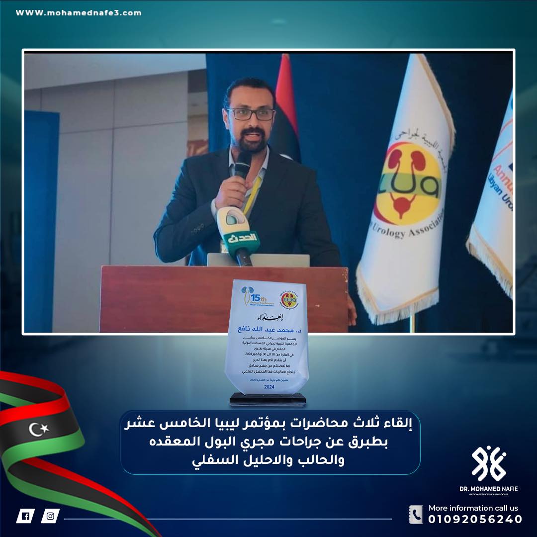 في إطار حرصه الدائم على تطوير جراحات المسالك البولية ومشاركة الخبرات الطبية مع كبرى المنصات العلمية، شارك الدكتور محمد نافع في فعاليات مؤتمر ليبيا الخامس عشر بمدينة طبرق، والذي يُعد من أهم المؤتمرات الطبية المتخصصة في جراحات المسالك البولية على مستوى شمال إفريقيا.وقد ألقى دكتور محمد نافع استشاري جراحات مجرى البول ومسالك الأطفال والكبار ثلاث محاضرات علمية متخصصة، تناولت أدق وأعقد الملفات الجراحية في هذا التخصص، وسط حضور واسع من الأطباء والاستشاريين من مختلف الدول العربية والإفريقية.محاضرات متخصصة في أدق جراحات مجرى البولتناولت محاضرات الدكتور محمد نافع محاور علمية شديدة الأهمية، من أبرزها:• جراحات مجرى البول المعقدة وكيفية التعامل مع الحالات التي فشلت في العلاج التقليدي.• جراحات الحالب وطرق توسيع الحالب الحديثة للحفاظ على وظائف الكلى ومنع المضاعفات.• الإحليل السفلي لدى الأطفال، ومتى يتم التدخل الجراحي على مرحلة واحدة أو مرحلتين، وفقًا لكل حالة على حدة.وقد حظيت هذه المحاضرات بتفاعل كبير، لما تميزت به من طرح علمي دقيق، مدعوم بخبرات عملية حقيقية ونتائج مثبتة على أرض الواقع.